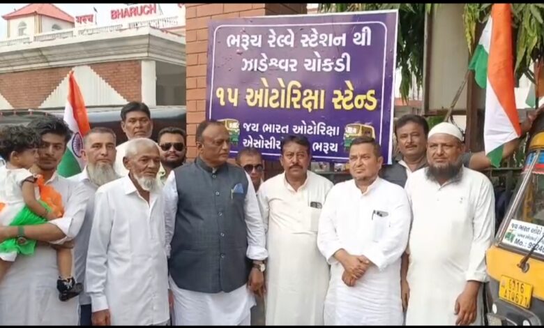 ભરૂચ સ્ટેશન સર્કલ ખાતે પ્રથમ ઓટોરિક્ષા સ્ટેન્ડનું લોકાપર્ણ કાર્યક્રમ રાખવામાં આવ્યો હતો.