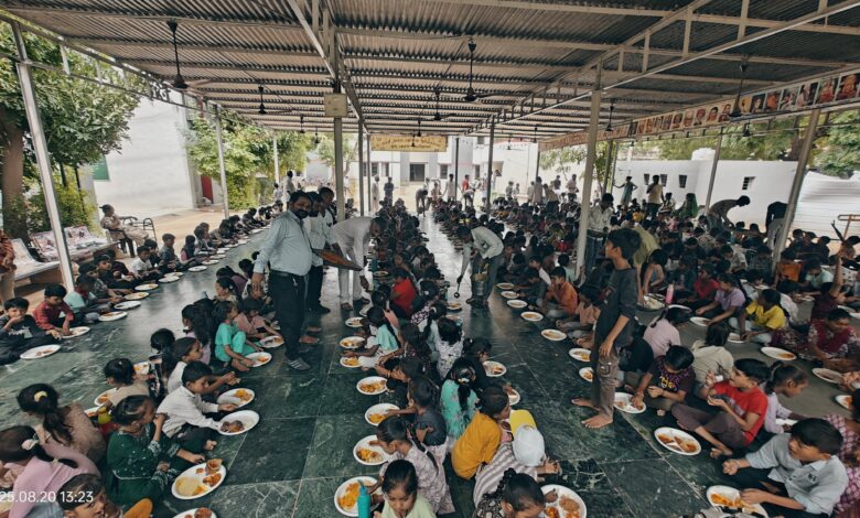 આણંદનગર પ્રાથમિક શાળા, થરાદ-૩ માં બાળકોને તિથિભોજન અપાયું..