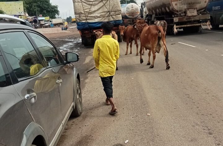 ૪. રસ્તા ઉ૫ર ઢોર અચાનક આવી જતા વાહન ચાલકોનું નિયંત્રણ ખોવાઇ જાય છે.