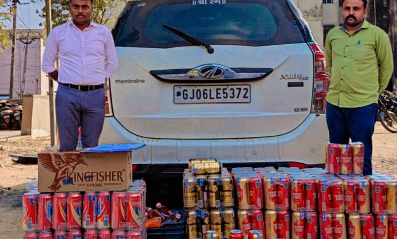જે આધારે શ્રી એલ.પી.રાણા, પોલીસ ઇન્સ્પેક્ટર જેતપુર પાવી પોલીસ સ્ટેશન નાઓના સુપરવીઝન હેઠળ પોલીસ સ્ટાફના માણસો જેતપુરપાવી પોલીસ સ્ટેશન વિસ્તાર વનકુટીર ત્રણ રસ્તા પાસે રોડ ઉપર વાહન ચેકિંગમાં હતા તે દરમ્યાન એક સફેદ કલરની મહિન્દ્રા કંપનીની XUV 500 W10 ફોરવ્હીલર ગાડી જેનો આર.ટી.ઓ.રજી.નં.GJ-06-LE-5372 ની શંકાસ્પદ રીતે આવતા તેને હાથ કરી ઉભી રાખવા ઇશારો કરતા તે ઉભી રાખેલ નહી અને પાવી ગામ બાજુ તરફ હંકારીને જવા દીઘેલ હતી જેથી ખાનગી વાહનથી તેનો પીછો કરતા પાવી ગરનાળા પાસે આવતા ગાડી ચાલક તેની ગાડી રોડની બાજુમા છોડીને ભાગી જતા તે મહિન્દ્રા XUV ગાડીમાંથી વગર પાસ પરમીટના ભારતીય બનાવટના વિદેશી દારૂના પતરાના ટીન બીયર તથા પ્લાસ્ટીકના ક્વાટરીયા મળી કુલ નંગ-૭૫૪ કિ.રૂ.૧,૭૧,૯૦૨/- તથા મુદામાલની હેરાફેરીમા પકડાયેલ મહિન્દ્રા XUV 500 ફોરવ્હીલર ગાડી જેનો આર.ટી.ઓ.રજી.નં.GJ-06-LE-5372 ની કિ.રૂ.૫,૦૦,૦૦૦/-મળી કુલ કિ.રૂ.૬,૭૧,૯૦૨/-નો પ્રોહી મુદ્દામાલ કબજે કરવામા આવ્યો.